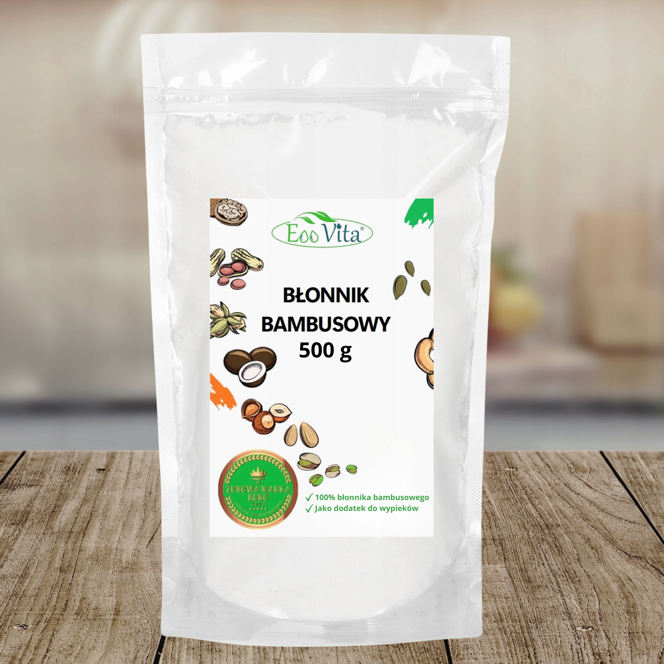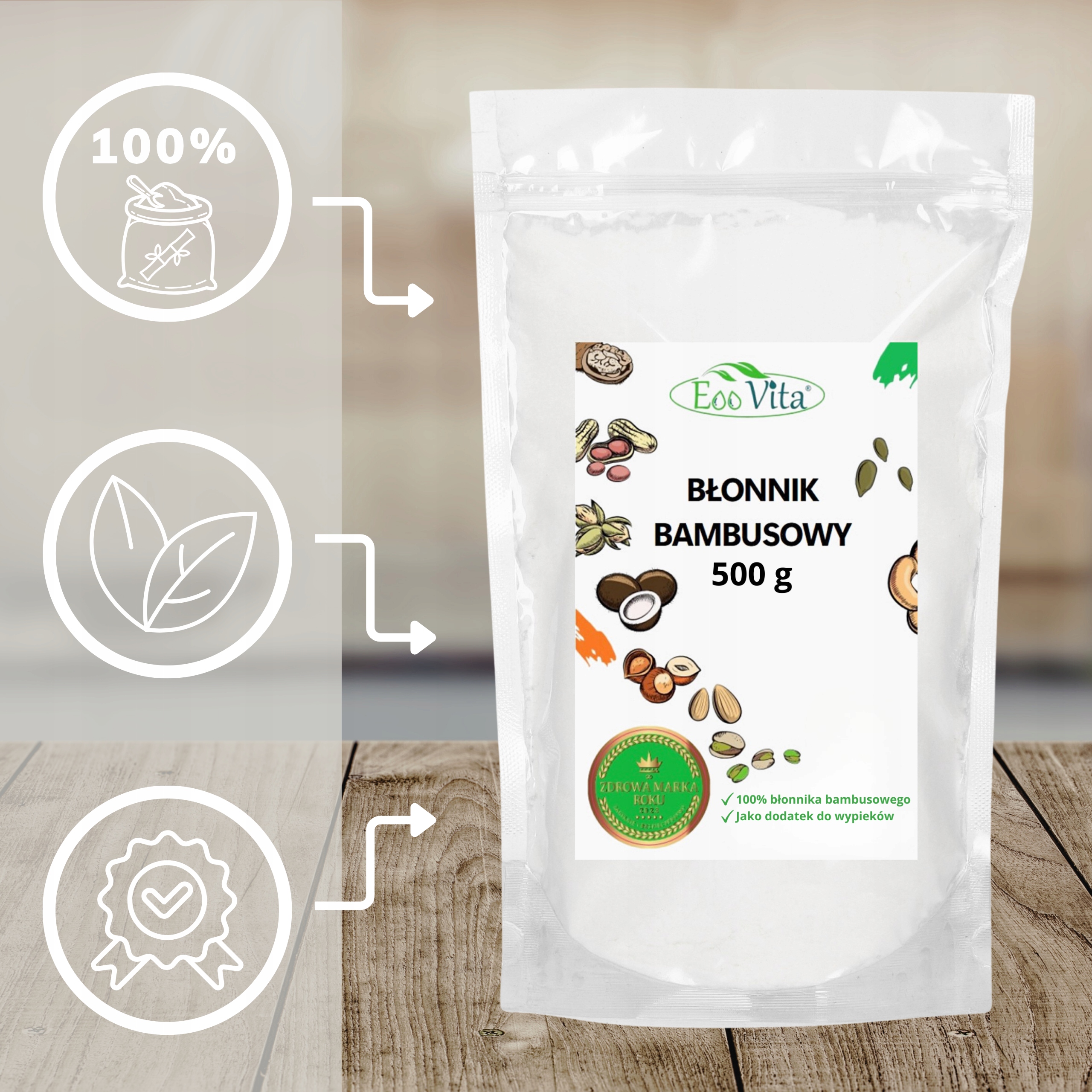 Błonnik bambusowy występuje w postaci bardzo drobnej, sypkiej mąki o jednolitej, puszystej konsystencji. Jego jasny kolor wynika ze starannego procesu produkcji z wysokiej jakości surowca. Dzięki temu produkt doskonale rozprowadza się w różnorodnych masach, ciastach czy napojach, nie tworząc grudek. Charakteryzuje się neutralnym, delikatnym smakiem, który nie wpływa na smak potraw. Sprawdzi się jako baza, dodatek lub uzupełnienie wielu przepisów kulinarnych – zarówno w wersji słodkiej, jak i wytrawnej.