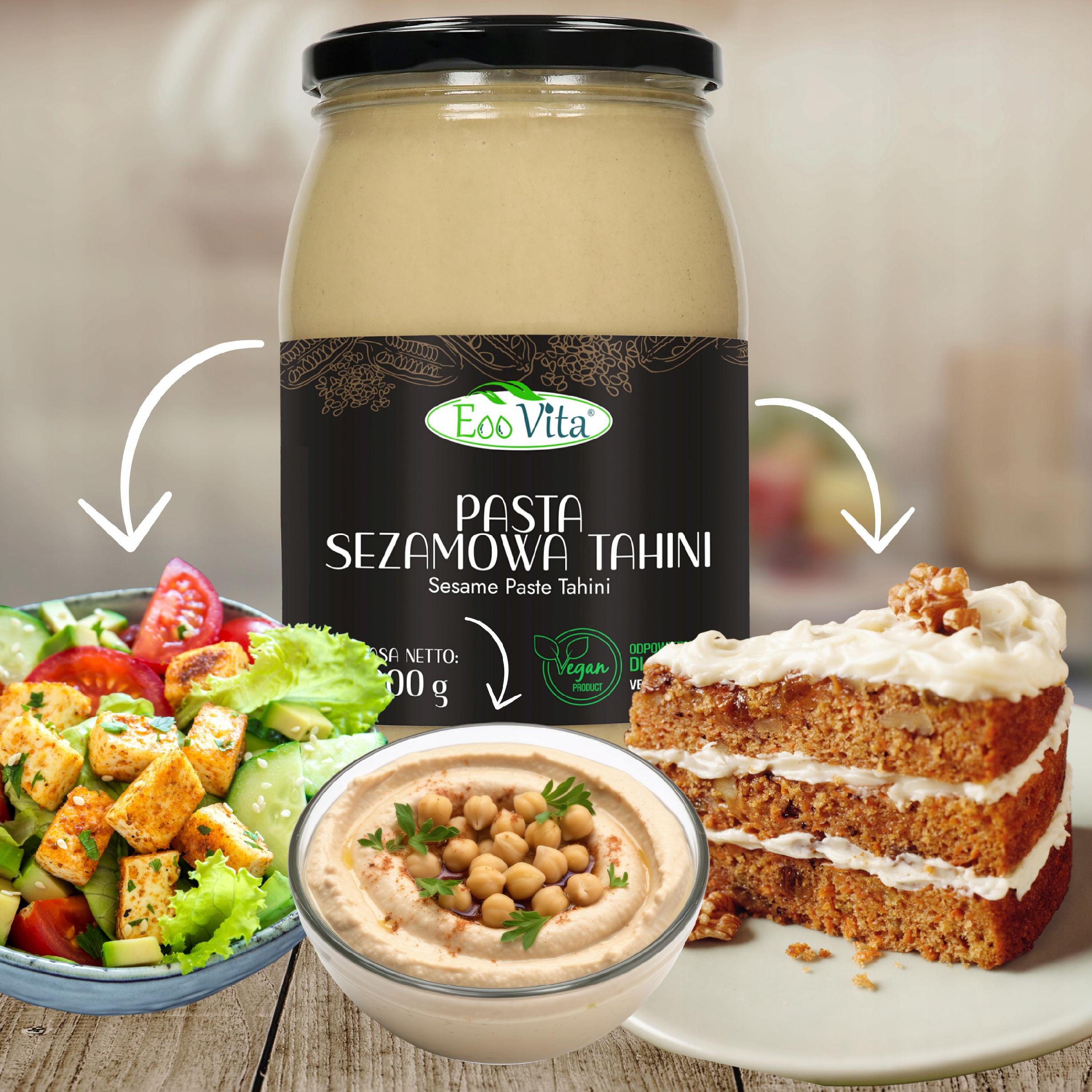 Pasta sezamowa to klasyczny składnik kuchni bliskowschodniej, ale z powodzeniem znajduje też zastosowanie w deserach, sosach i wypiekach. Dzięki swojej płynnej strukturze łatwo łączy się z innymi składnikami i nadaje daniom charakterystyczny smak.
