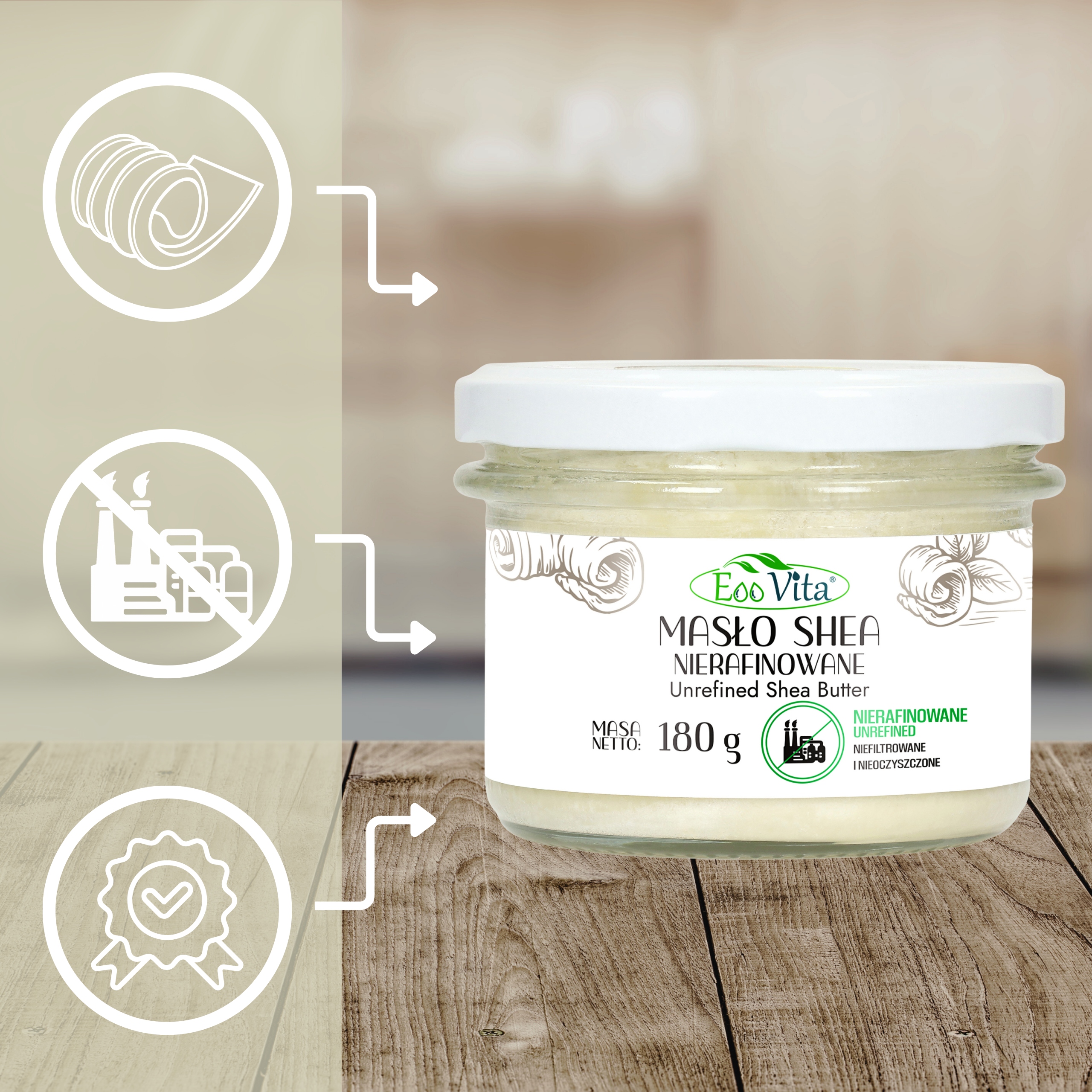 | Nazwa handlowa | MASŁO SHEA NIERAFINOWANE 180 g |