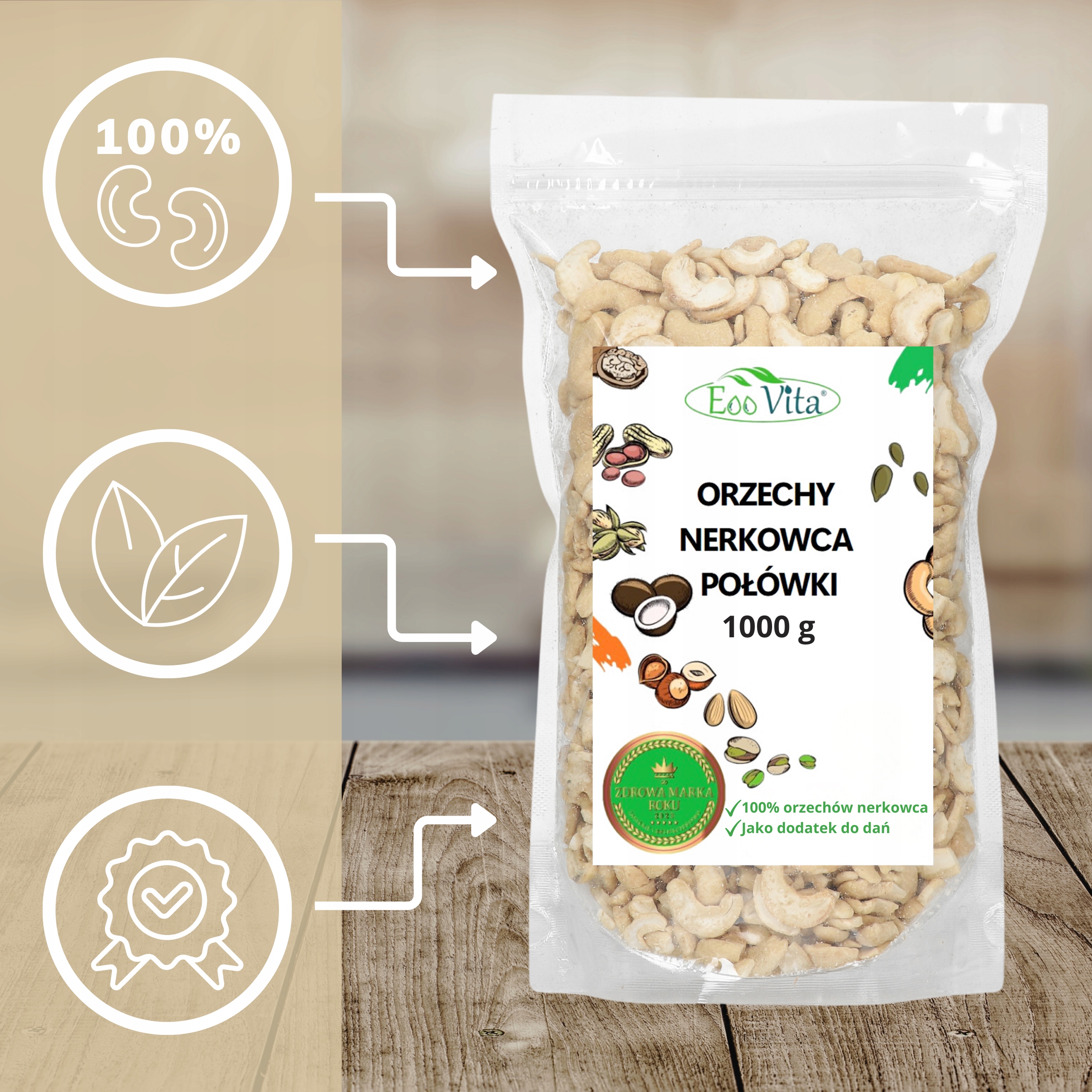 | Nazwa handlowa | Orzechy nerkowca połówki 1000 g |