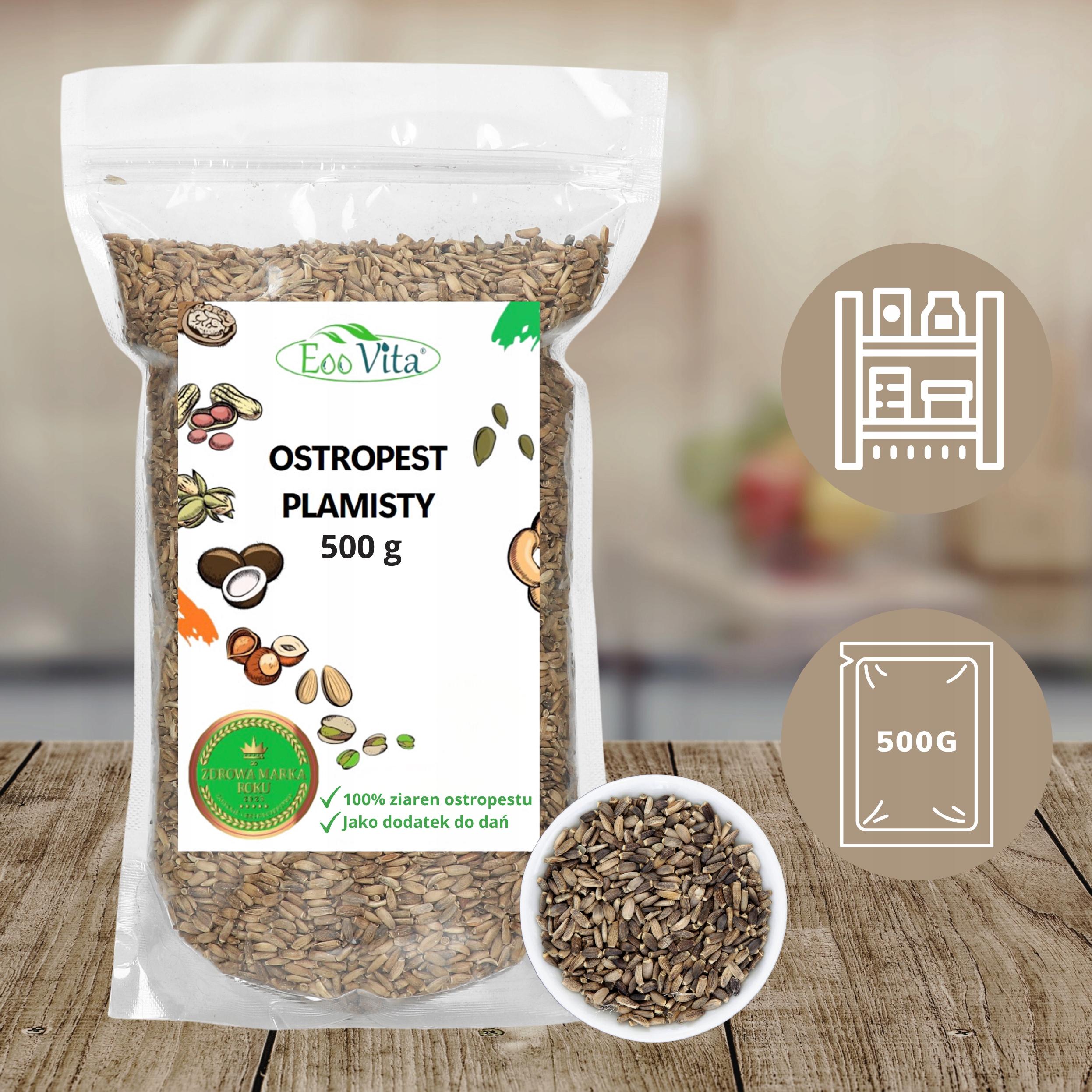 Ziarna ostropestu wyróżniają się jasnobrązowym kolorem i zwartą, suchą strukturą. Dzięki swojej twardości dobrze sprawdzają się do mielenia, ale można je również dodawać w całości do różnorodnych przepisów. Ich delikatnie roślinny aromat komponuje się z wieloma składnikami – zarówno słodkimi, jak i wytrawnymi. Ziarna są stabilne w przechowywaniu i nie zmieniają swojej formy nawet po dłuższym czasie. Sprawdzą się jako baza domowych mieszanek do musli, pieczywa czy past.
