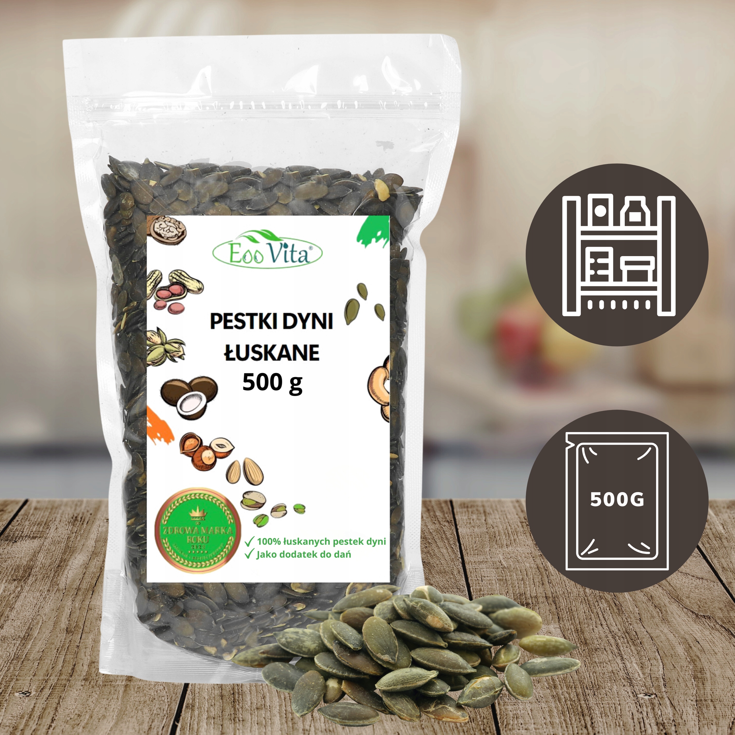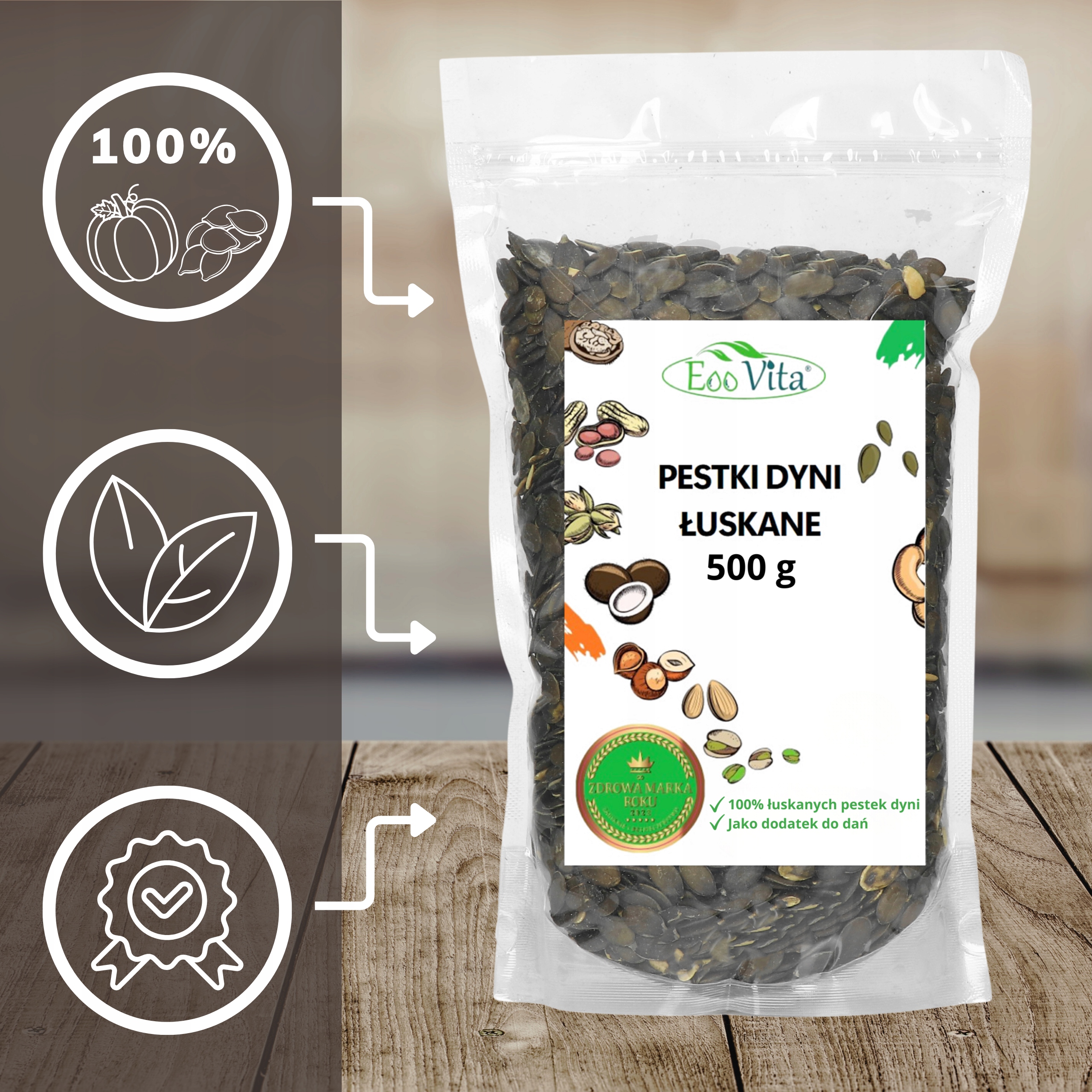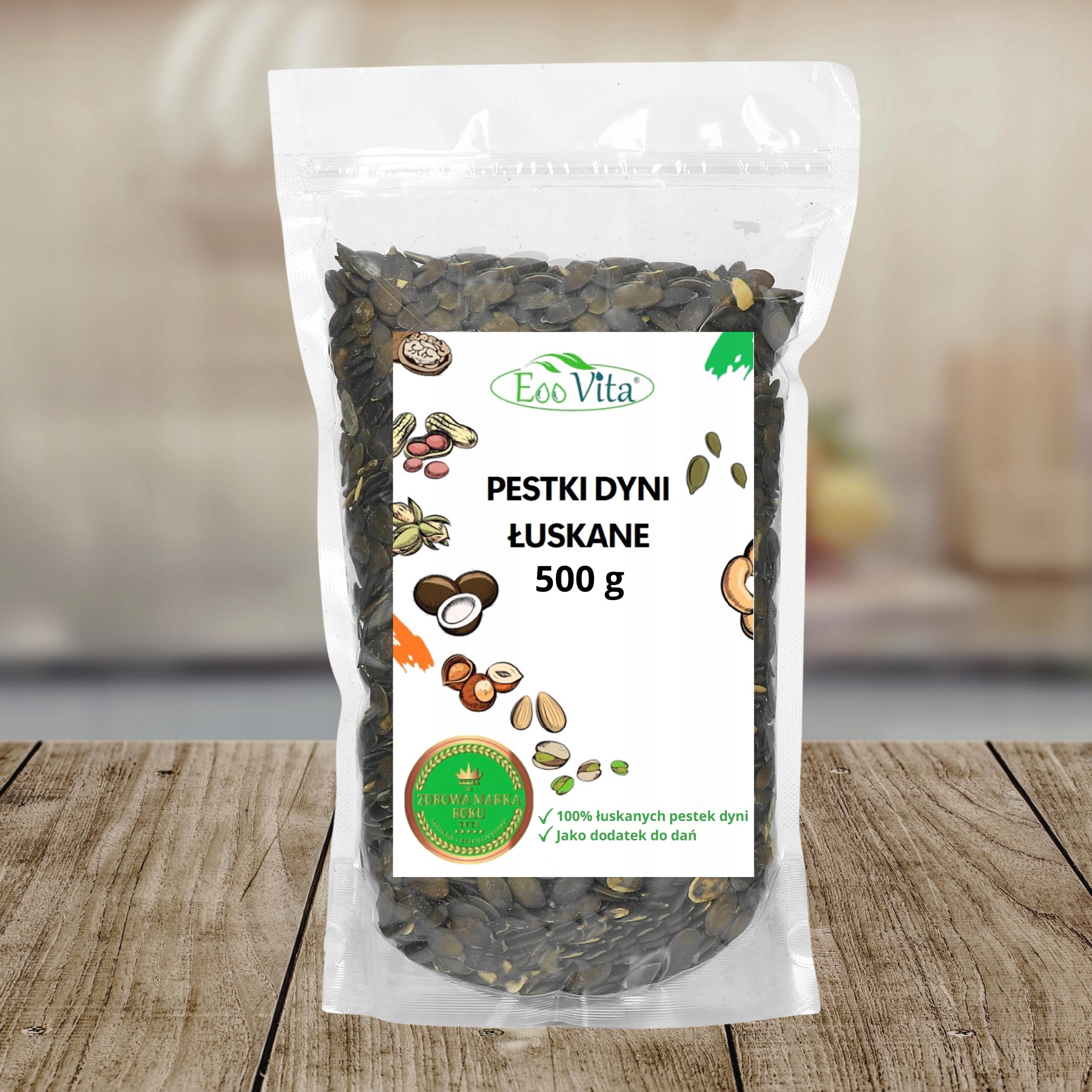 Pestki dyni łuskane mają postać drobnych, lekko spłaszczonych ziaren o jednolitej, intensywnie ciemnozielonej barwie. Kolor ten wynika z wyboru starannie wyselekcjonowanej odmiany pestek oraz odpowiedniego procesu łuskania i suszenia. Dzięki temu produkt łatwo łączy się z innymi składnikami, zarówno suchymi, jak i mokrymi, nie powodując grudek.