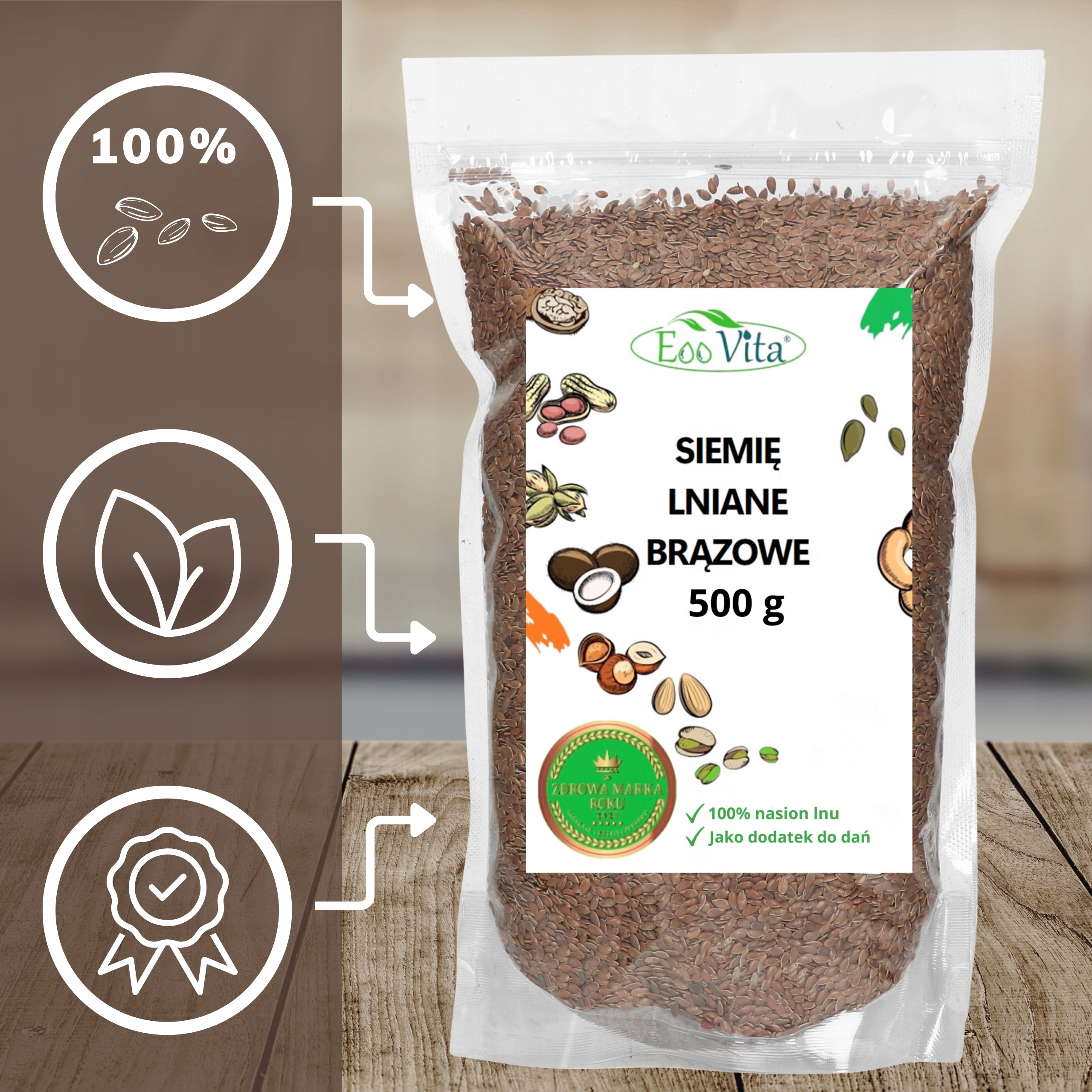 - Składniki: Nasiona lnu 100%