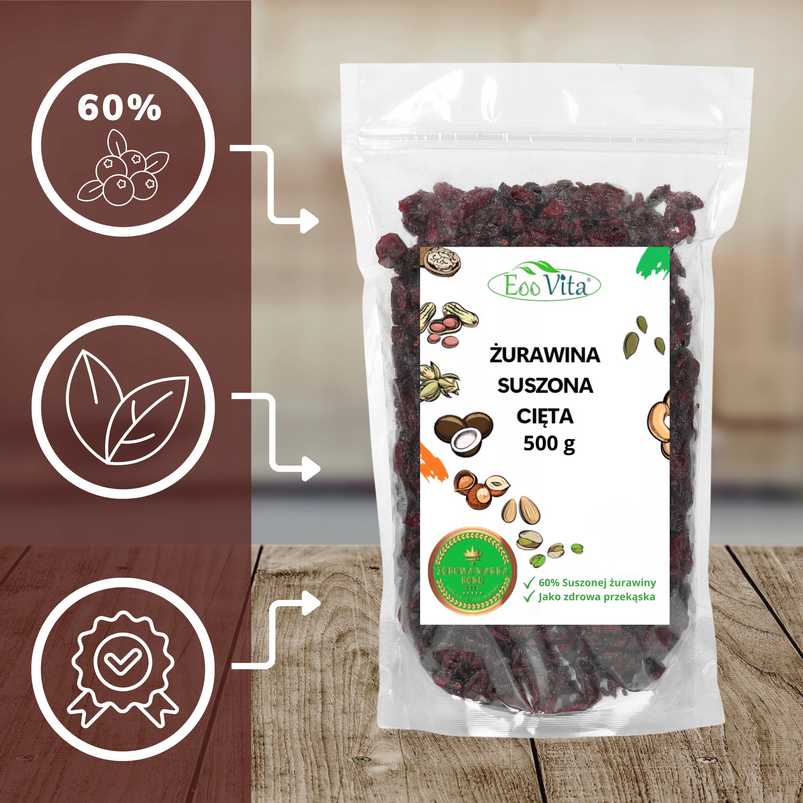✅ 60% żurawina suszona cięta