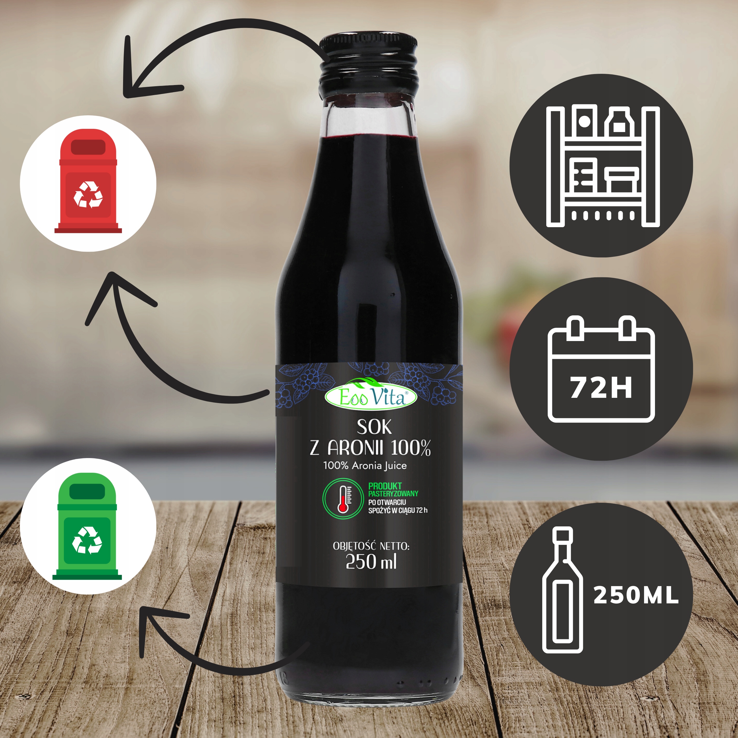 ✅ 100% sok z aronii - pasteryzowany