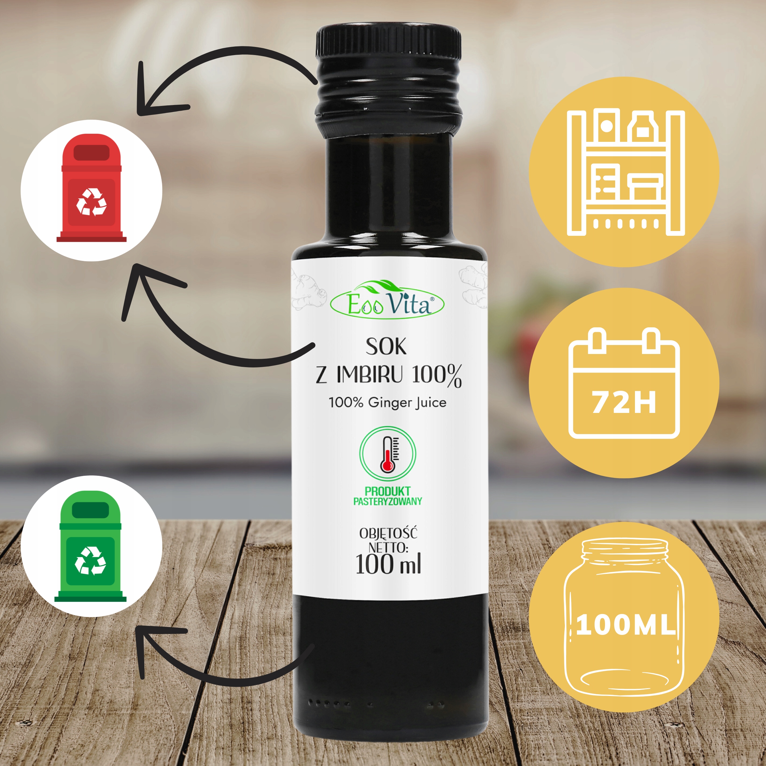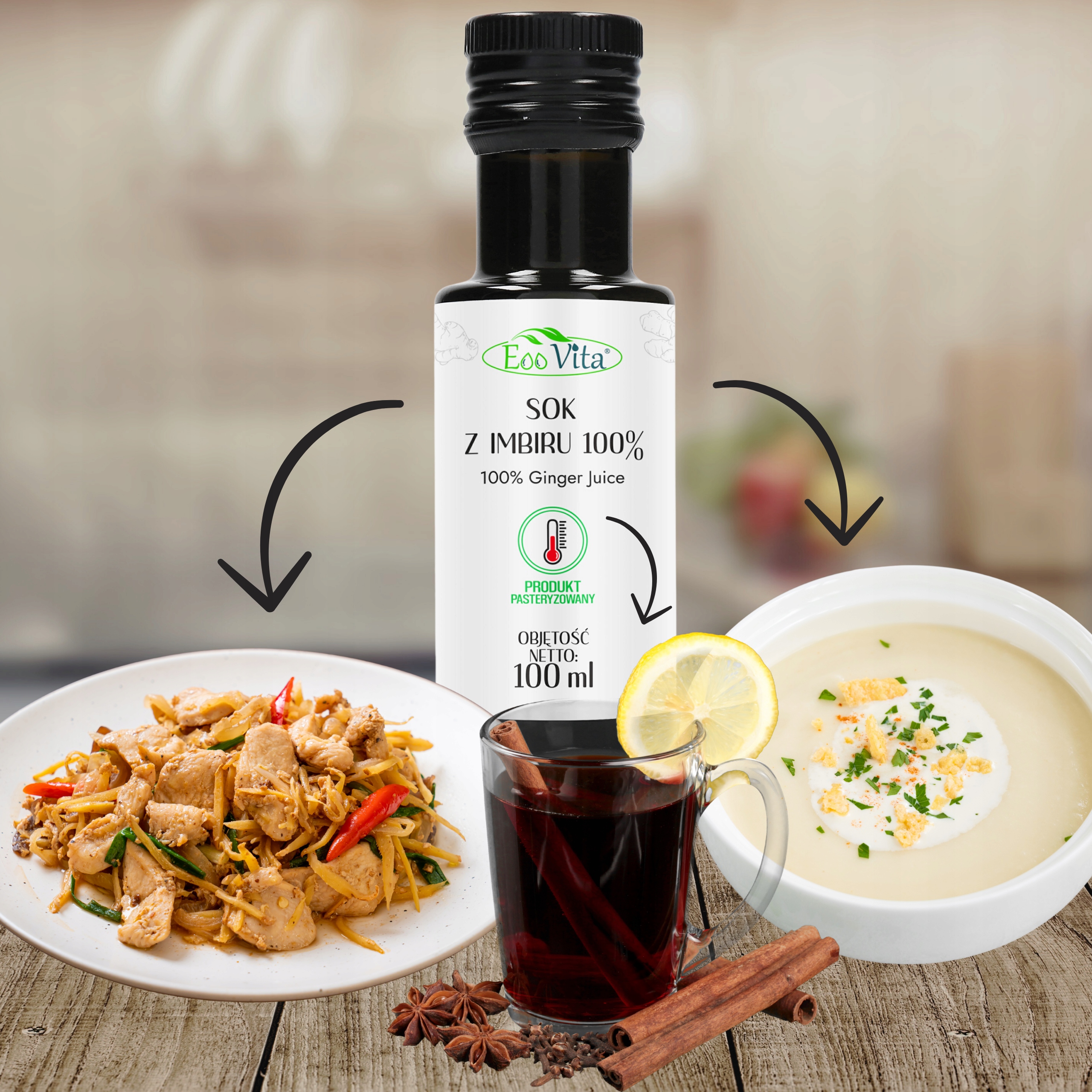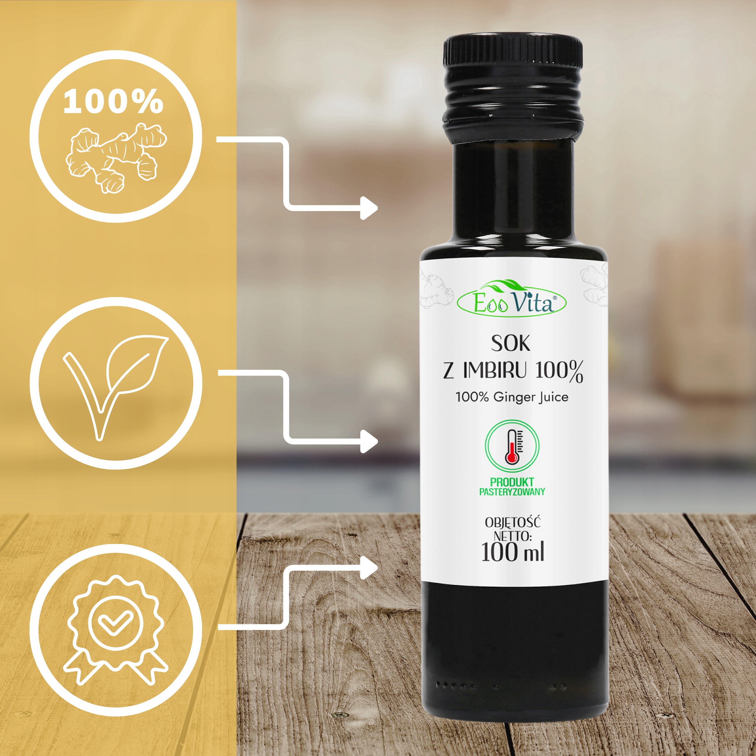 Sok ma płynną, gładką strukturę i intensywny, ostry smak charakterystyczny dla imbiru. Wyróżnia się wyrazistym, żółtym kolorem, który nadaje potrawom ciekawego charakteru. Dzięki wygodnej formie można z łatwością odmierzyć odpowiednią ilość i dodać do różnych przepisów – od klasycznych napojów rozgrzewających po marynaty czy dressingi. Sprawdza się w chłodnych i gorących daniach, nie tracąc swojej esencji. Sok jest odpowiedni do spożycia przez Wegan i Wegetarian.