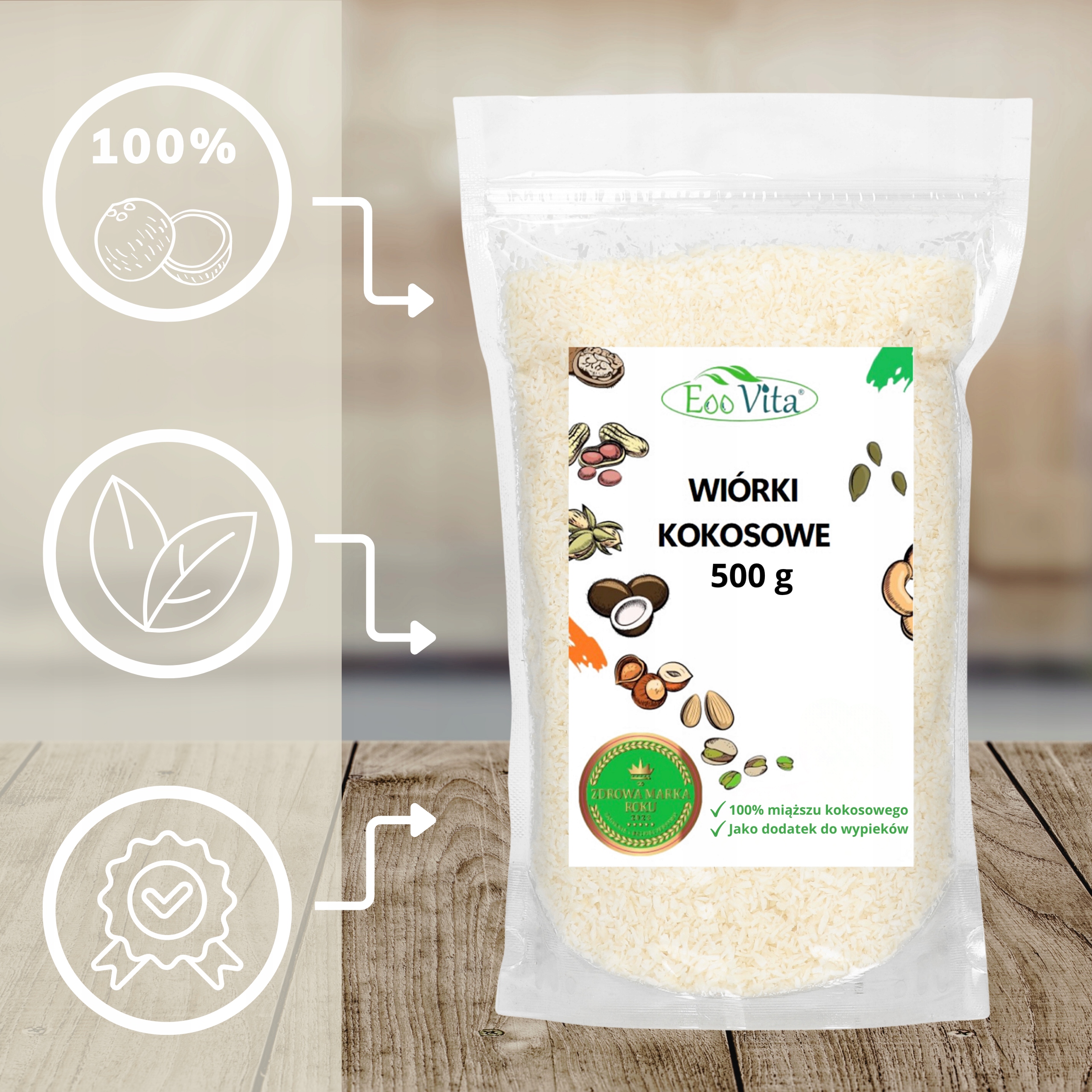 ✅ 100% miąższu kokosowego